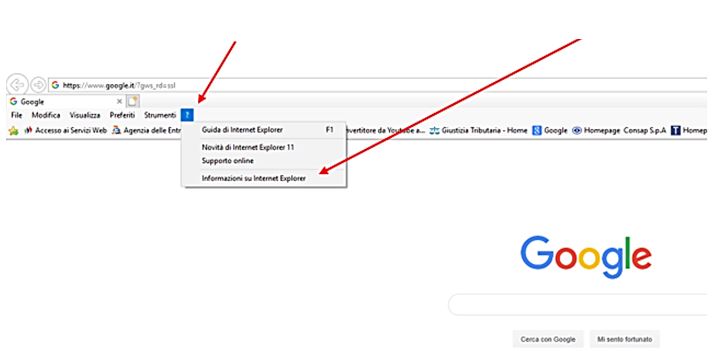 Per verificare la versione utilizzata del proprio browser è possibile consultare la voce "Informazioni su …" presente nel menù "Aiuto" o “?”