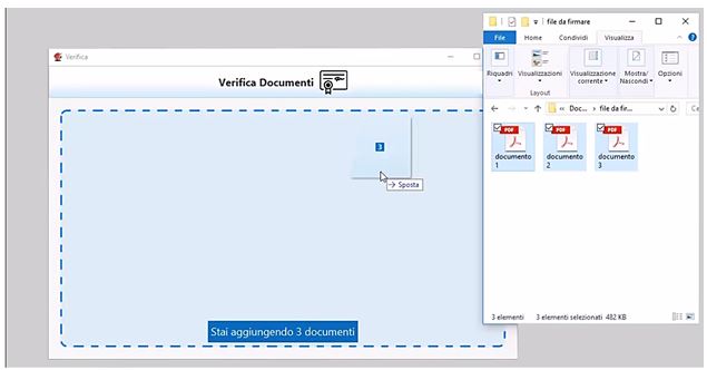 Con questa opzione possiamo trascinare contemporaneamente anche tutti i file a cui intendiamo apporre la firma digitale con una unica semplice operazione: