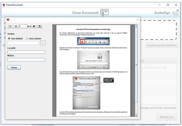 IN CASO DI FIRMA PAdES: 7) se al precedente punto 4) abbiamo selezionato una firma PAdES, il sofware prima di proseguire ci esporrà il testo del documento per una sua obbligatoria visione e per scegliere il timbro/firma da apporvi sopra: