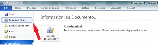 1) Dal menu file cliccare sulla voce “salva con nome”:
