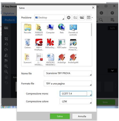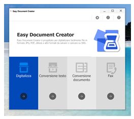 Per effettuare una scansione in formato immagine TIFF procediamo nell'esempio utilizzando il programma per la scansione documentale “Easy Document Creator”, ma la procedura è analoga per tutti i tipi di software utilizzabili per una scansione di un documento cartaceo.