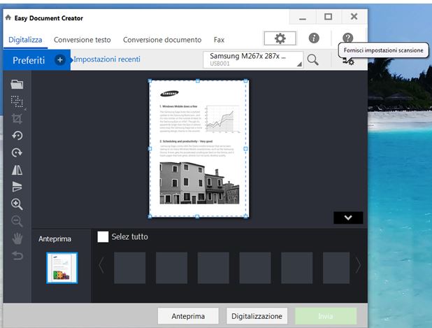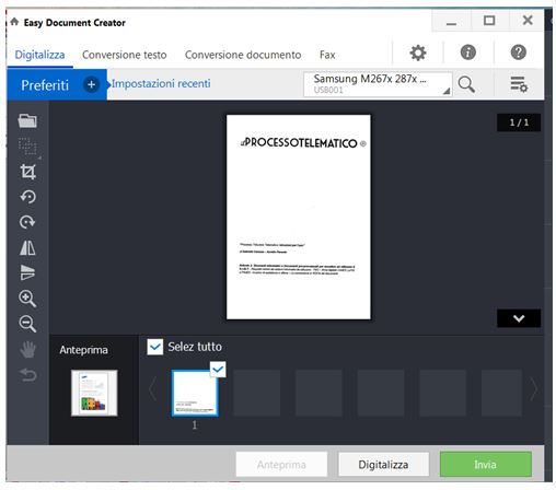 3) Se è tutto ok, il documento letto dallo scanner ci comparirà a schermo, uno più pagine a seconda di quante sono quelle lette: